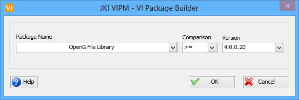 This dialog can be launched from the Package Dependencies or Incompatible Packages, properties pages of the VI Package Builder window.