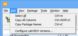 Copy Package Names: This action copies all the package names (including version) visible in the package list into the system clipboard. The data is in tab delimited text format. You can paste this data into any other program that supports pasting data from the clipboard.