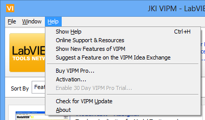 Suggest a Feature on the VIPM Idea Exchange: Selecting this option will open a web page for access to VIPM Idea Exchange. You can use this to suggest new VIPM features for the next release of VIPM.