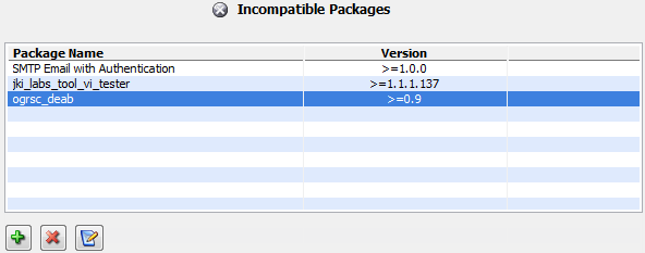 The Incompatible packages page of the VI Package Builder window allows you to define packages which are not compatible with your package. When a package is not compatible with your package, it is said to be “in-conflict” with yours.