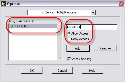6.  Go to the VI Server: TCP/IP Access category.