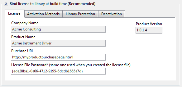 Company Name: This name appears in the Third Party Add-on Activation Wizard, where users activate add-ons. LabVIEW also uses the company name to identify the directory to which the add-on installer installs the add-on license file on users' computers.