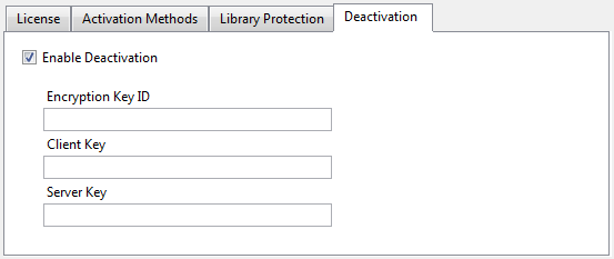o Third, fill in the information required in the License, Activation Methods and Library Protection tabs shown below.