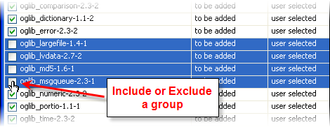 1. Selected Package: This column shows the name of the package(s) that will be included in this action. Here you can include or exclude the package from the action by clicking the checkbox next to it. If you select (highlight) multiple packages in the list then when you toggle any of the checkboxes, all the packages will be affected (see Figure 103).