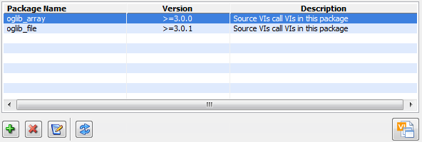 The Dependencies properties page of the VI Package Builder window allows you to manage the dependencies of your VI Package build.