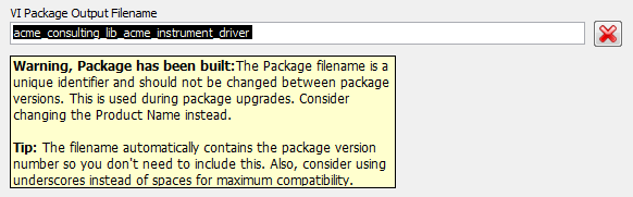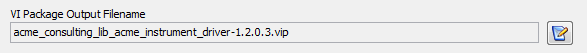 The Package Filename properties page of the VI Package Builder window allows you to define a custom filename for your package.