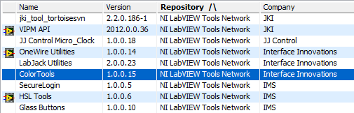 Table 1 - VIPM Main Package List Glyphs
