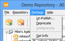 Un-Publish: Selecting this will remove the selected packages from the repository. There will be a confirmation dialog before packages are unpublished.
