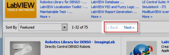 Clicking on the Next and Back links allow you to navigate through pages of product listings.