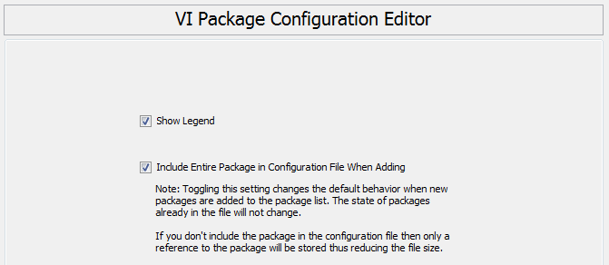 Include Entire Package in Configuration File When Adding: Toggling this setting changes the default behavior when new packages are added to the package list. The state of packages already in the file will not change.
