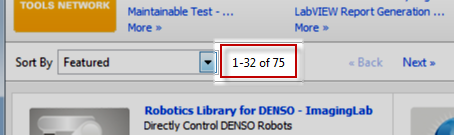 This indicates where you are in the page navigation of the product list. Each page shows 32 products. You will see the total number of products in the current view.