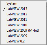 installed to build System packages. You can also right-click on this selector to launch the selected LabVIEW version. |